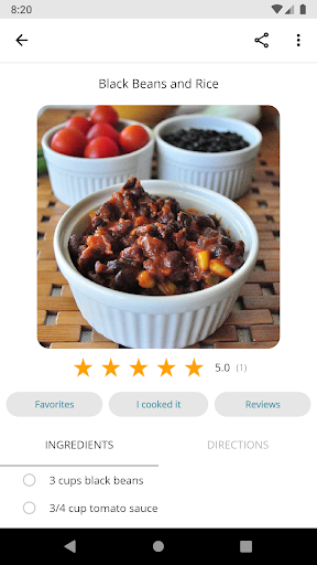 Aplikasi resipi berfungsi di luar talian. Boleh memilih resipi yang anda suka dan menyimpannya dalam kegemaran anda.