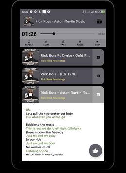 Rick Ross song's application comes with lyrics in each song and this application can run OFFLINE (without the need for internet)
