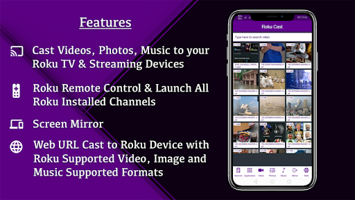 Roku Cast App Cast Video, muzik dan foto pada peranti Roku anda. Stream Foto Lokal, Muzik & Video dari telefon anda atau pelayan media lain ke TV pintar Roku yang disambungkan. Fungsi aplikasi Roku jauh yang mengawal peranti Roku anda.