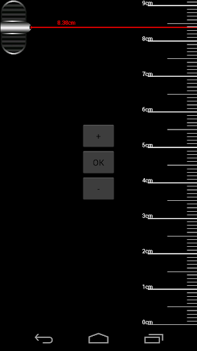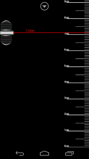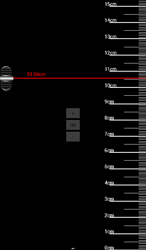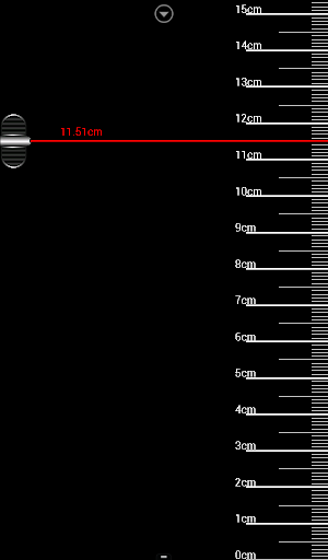You can move the slider to get a better measure. The "laser" that comes from the slider will tell you the exact length in centimeters. Just put the small thing on the screen, with one end at the 0cm position and move the slider to the other end. Be careful with the things you put on top of your screen, it could be damaged with hard and heavy things, I will not be responsible for the damages caused to the screen by the use of Ruler cm.