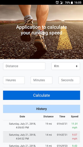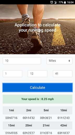 Thanks to this application you can calculate your running speed in km / h for an entry distance.