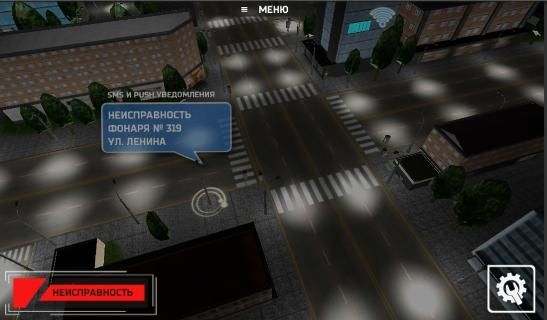 After starting the AR-application on the device to move the camera logo S-Led trademark away immersed in a city, with interactive lighting control in three modes: