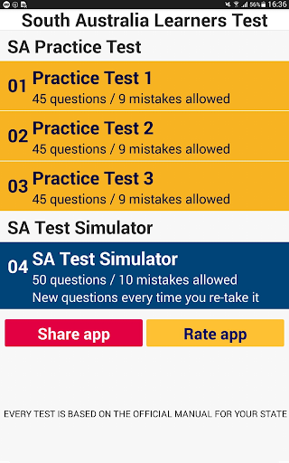 SA Pembelajar Ujian adalah seperti Ujian Pembelajaran Australia Selatan yang sebenar.Soalan berdasarkan langsung dari Buku Panduan Pemandu Australia Selatan 2018 rasmi.