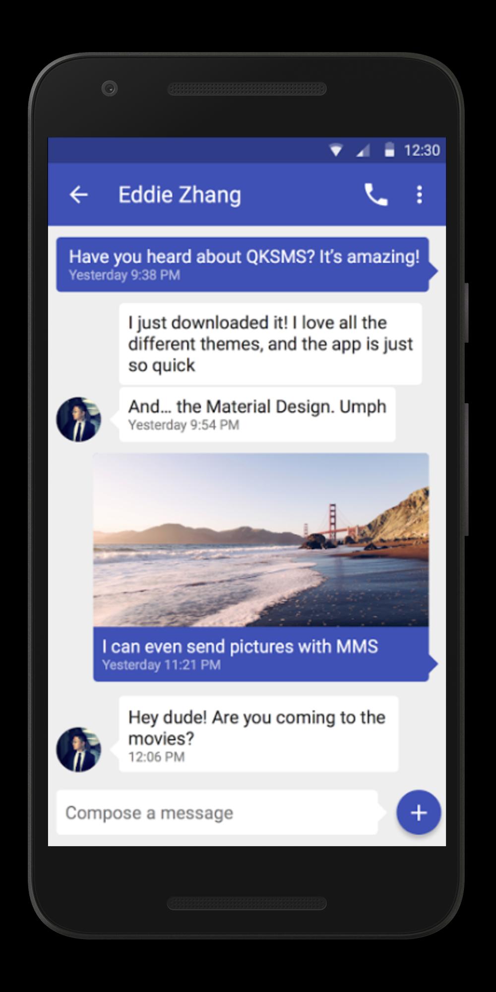 SMS MMS Messaging brings a refreshingly beautiful and responsive Material Design touch to the stale state of text messaging. In a world with clunky SMS and MMS apps cluttered with bloat and ads, SMS Android Messages is something to get excited about. We’re making texting magical again.