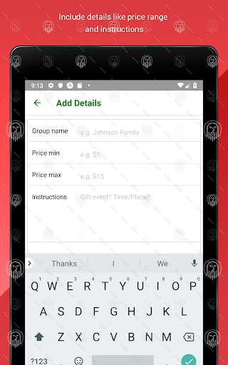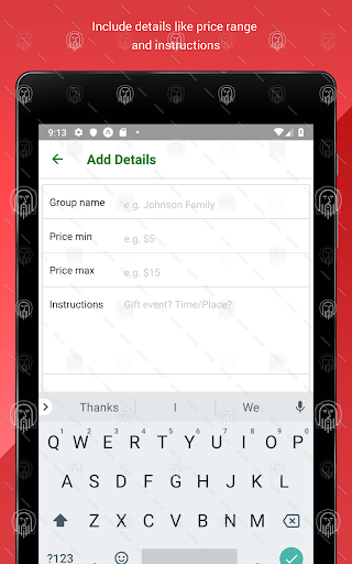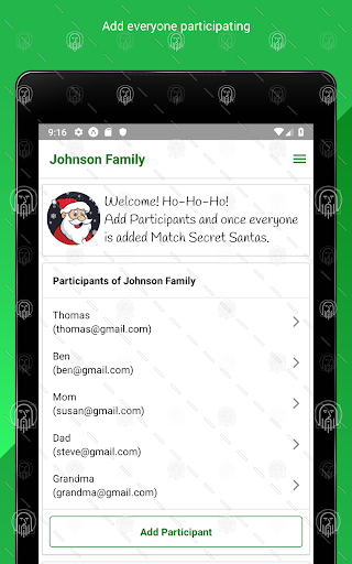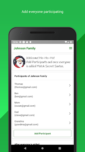 Buat pertukaran hadiah santa rahsia anda untuk keluarga, rakan, atau rakan sekerja.Cepat dan mudah untuk menambahkan semua peserta, menambah perincian (julat harga, arahan, dll) dan meminta aplikasi untuk melakukan yang lain!