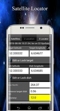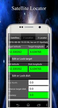 2- The GPS location of the satellite dish and the GPS location of a target (or reference point) is needed. The target can be the GPS location of a house, tree, plant, etc. Just enable the GPS in your phone or enter the GPS locations with the help of Google Earth/Maps (satellite dish position and a visible target position).