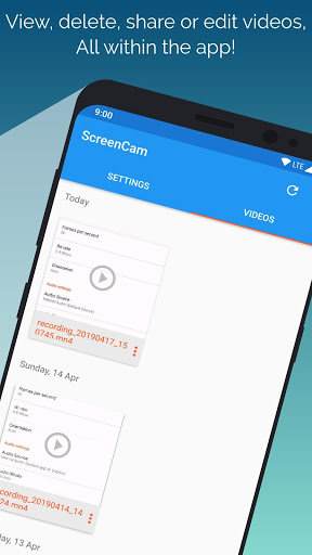 Pilih dari resolusi yang berbeza, bingkai sesaat dan bitrate untuk pilihan terbaik kualiti dan saiz video atau menggunakan aplikasi pintasan dalam Android 7.1 Nougat atau dalam mana-mana pintasan aplikasi yang menyokong aplikasi yang menyokong. Tiada iklan atau apa-apa harga yang dilampirkan kepadanya. ScreenCam adalah perakam skrin ringan dan fungsi terbaik yang terdapat di pasaran.