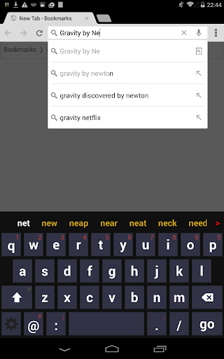 A simple keyboard that provides vector prediction (swiping between keys) using a dictionary of 45000 words.