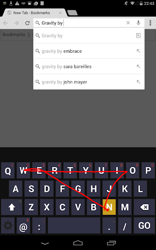 To spell out words swipe over the keyboard. Single letters may be added by tapping them. Shift for capitalisation of the initial letter by tapping on the Shift key. Double tap the Shift key to perform a Caps-Lock.