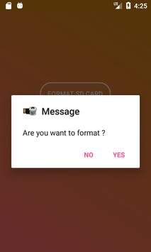 Sd Card Formatter is an app which is used to format sdcard data. Just click on the erase button, the app will erase all the data on the SD card of the phone .
