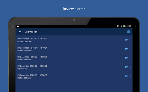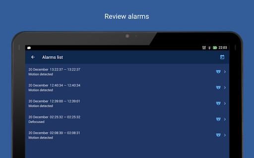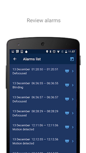 • Camera events view. Access the corresponding moment from the video archive in a single tap. Types of the events to be received are configured in the SecurOS system.