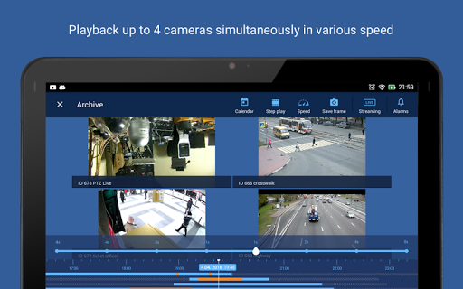 • Up to 4 cameras simultaneous view (live or archive video).