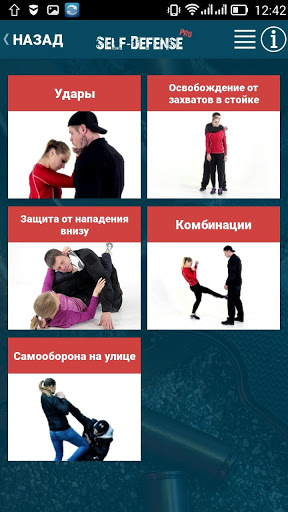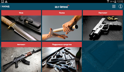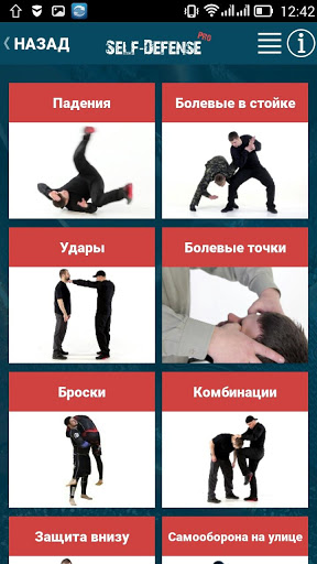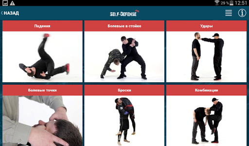 Dalam aplikasi kami, anda akan melihat lebih dari 200 video latihan terperinci berkualiti tinggi tentang cara melakukan teknik atau pukulan dengan betul dan berkesan! teknik untuk lelaki dan wanita, serta bekerja dengan sebarang jenis senjata.