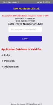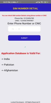 Find the details of any phone number or the details of SIM on any CNIC. This Application is valid. Enter the Phone number without zero (0) and get owner details of that number. Like owner name, owner CNIC, Owner address etc.