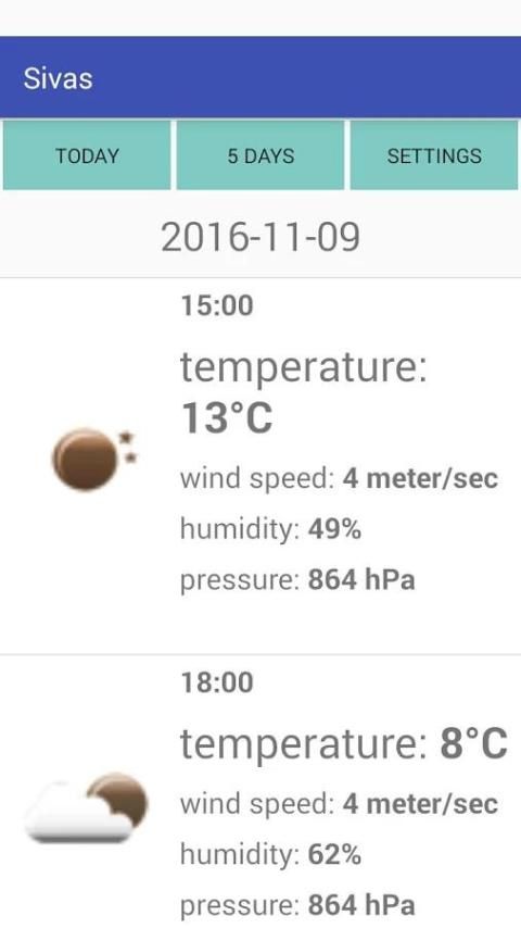 Weather Sivas, a simple and convenient app showing weather forecast for the city of Sivas.
