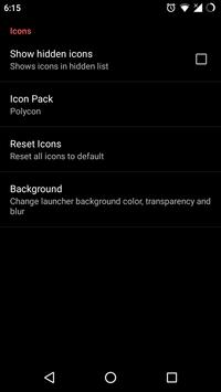 - Fast & lightweight - Hide apps - Icon pack support - Per app icon customization - Background color & blur filter