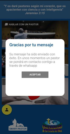 Esta aplicación le va poner en contacto con pastores expertos en liberación y sanidad. No importa cuál sea el día o la hora que necesite. Estamos para orientarle y acompañarle en todos sus momentos. SmartPastor es un camino que le acerca a la felicidad