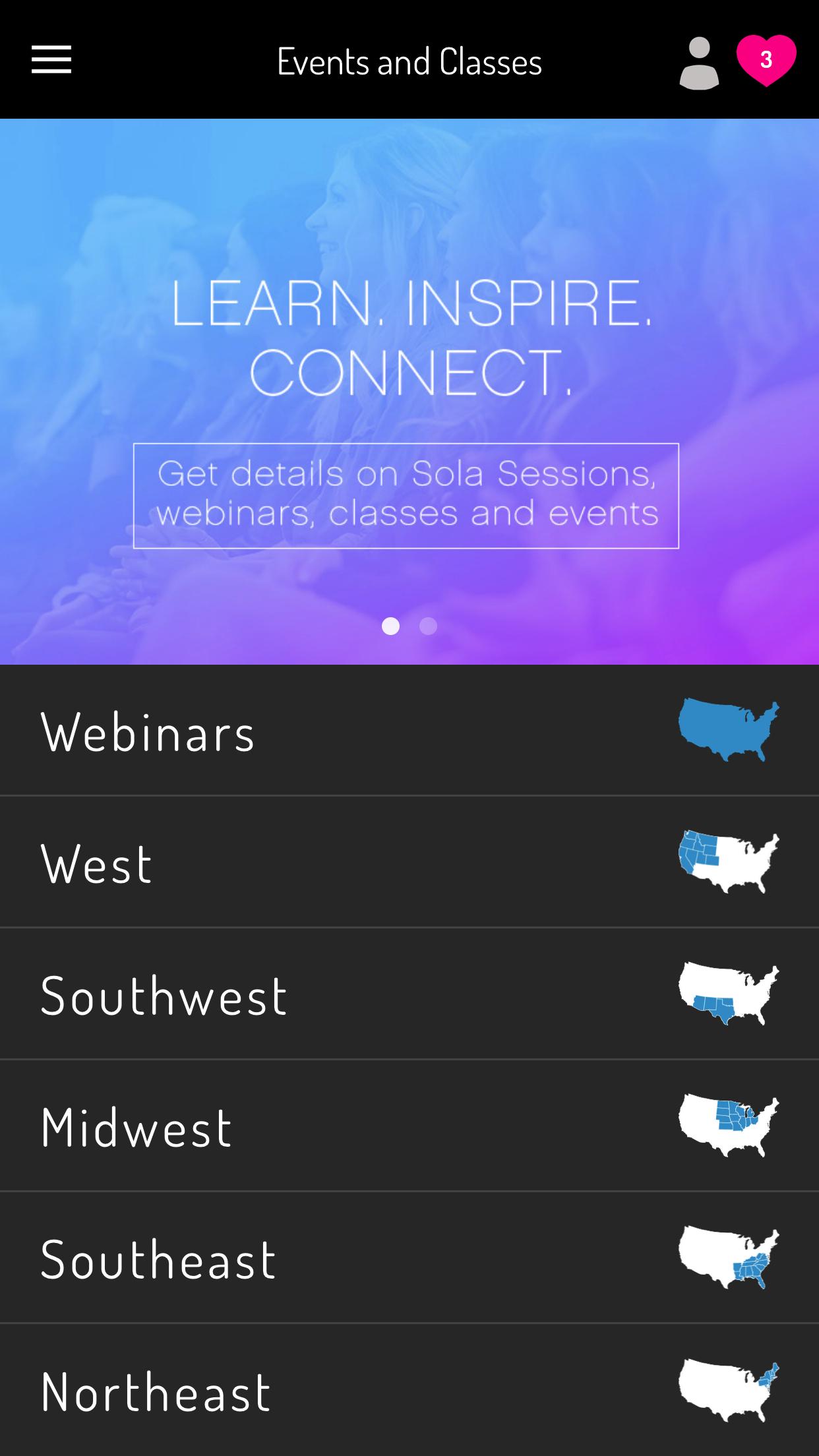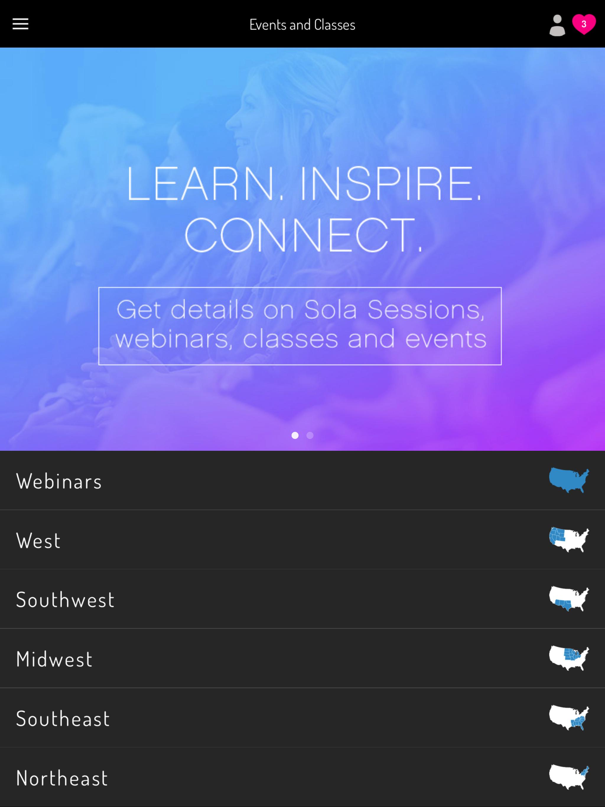 * Check out the Events calendar to see what events and classes are scheduled in your area (including the Sola Sessions)!