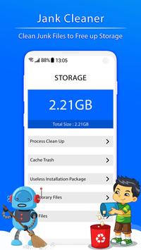 the junk files that slow down your cell phone. With our powerful analytics engine, you will not only get more storage space from the cleaning process of cache, applications, download folders, browser history, and clipboard content and more, one touch and cache or junk files will be cleaned!
