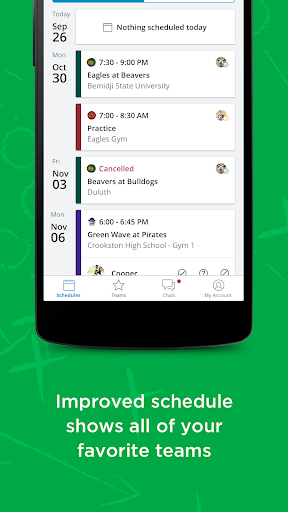 Sekarang anda akan sentiasa tahu di mana untuk menjadi. Lihat jadual pasukan terkini, dapatkan pembatalan atau perubahan, berbual dengan jurulatih, ibu bapa, dan rakan sepasukan, dan juga berkongsi foto pada aplikasi Pengurusan Pasukan Sukan SportsEngine.