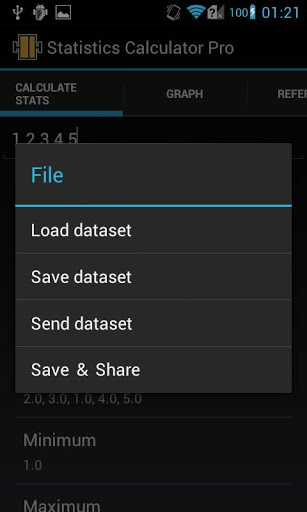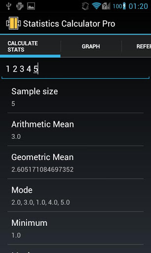 While you enter data, the app will calculate statistics and draw graphs corresponding to the data entered.