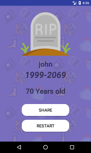 Death Calculator is a free and free app that will allow you to calculate your date of death basing on random factor, random number and random random, you will be asked random questions about your lifestyle and according to your (random?) answers will be calculated the random fake date of your death.