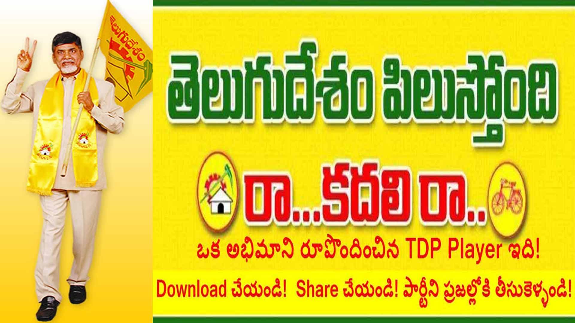 ఒక అభిమాని రూపొందించిన TDP Player ఇది! Download చేయండి! Share చేయండి! పార్టీని ప్రజల్లోకి తీసుకెళ్ళండి!