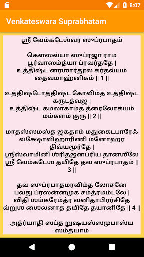 * Audio berkualiti tinggi Tamil Venkateswara Suprabhatam dengan segera mengubah Lyrics Tamil bersama-sama dengan audio.