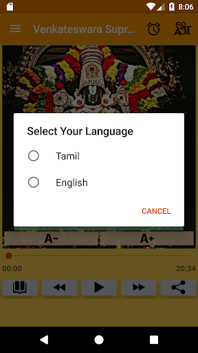 * Meningkatkan dan mengurangkan saiz teks lirik Tamil dari slokas suprabhatam ini mengikut kemudahan anda.