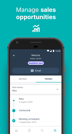 📈 Urus peluang penjualan anda pada bila-bila masa. Jual di mana sahaja, kemas kini data CRM dalam masa nyata, dan tutup tawaran anda lebih pantas. Tambahkan tawaran baru di tangan anda, atau gerakkan yang ada melalui saluran penjualan anda.