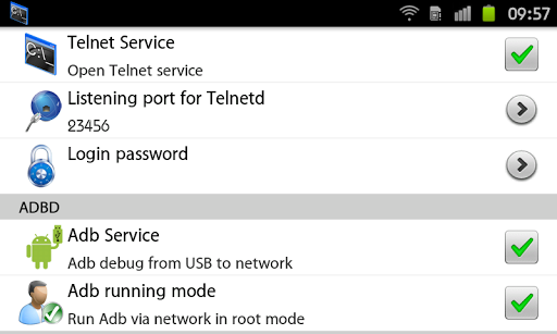 Sekiranya anda memasangnya di Android 3.1 atau lebih tinggi, jalankan aplikasi ini sekurang-kurangnya sekali setelah pemasangan atau kemas kini, maka perkhidmatan boot automatik Telnetd dapat didaftarkan ke sistem Android.