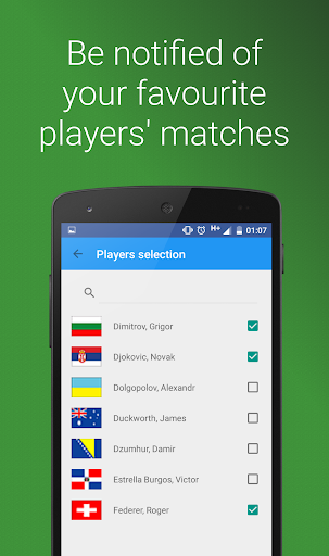 - Set alerts and receive notifications for the matches of your favourite players!