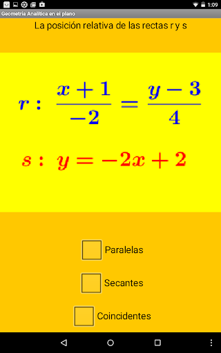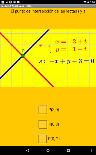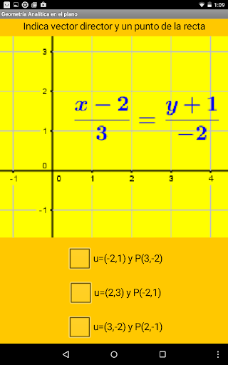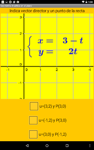 Test de 20 preguntas sobre geometría analítica. Se estudian las ecuaciones paramétricas, continua, implícita , explícita, y punto pendiente de la recta.