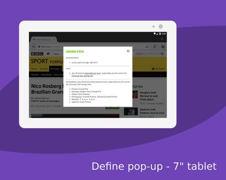 This feature shows you a swift little pop-up with the definition of the word. Ideal when you are reading an e-book or a news article and find it rather distracting to open a dictionary app again and again.