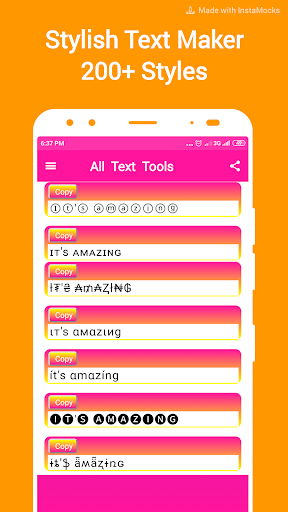 Nowadays everyone wants to impress people's on social media platforms like Facebook, Twitter, Instagram, what's app then why you not ! Try our best Text decorating Tools App and impress your friends on Facebook, Twitter, Instagram, What's app.