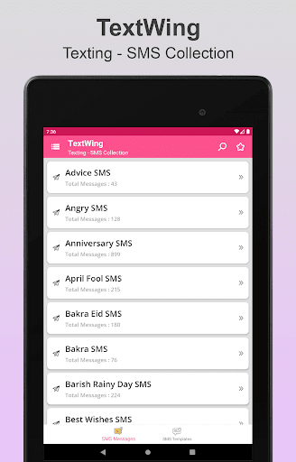 ⭐ Kira-kira 100 Kategori Koleksi SMS Seperti persahabatan, cinta sedih, percintaan, jenaka lucu, hari jadi, puisi (Shayari), keinginan pagi, SMS malam yang baik, Ghazals, Shadi-perkahwinan, kasar, bijak, cuaca, Santa Banta, Ramadan, Punjabi SMS dan banyak lagi kategori.