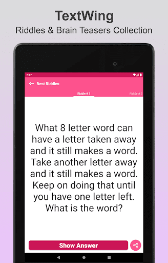 ← Teka-teki anda Kawan dengan beberapa penggoda otak baru, teka-teki dan twister lidah yang termasuk dalam aplikasi ini.