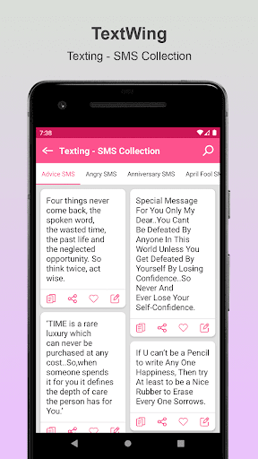 ⭐ 1,00,000 mesej (SMS terkini) untuk berkongsi atau menyalin kepada pilihan papan klip untuk mengedit MSGS. Membantu untuk bermain-main dengan cinta anda menggunakan mesej cinta yang lucu, sms flirty, dan jalur pick-up romantis.