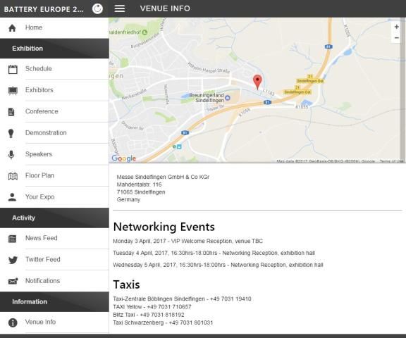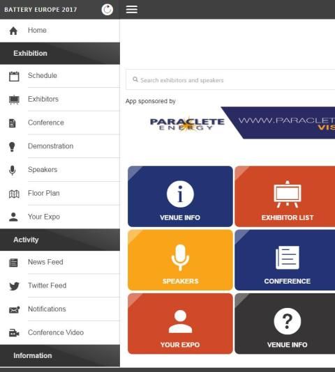 This is the official application for the Battery Show and Electric & Hybrid Vehicle Technology Expo Europe. The app provides up-to-date exhibitor listings, an exhibition floor plan, the full conference agenda, and speaker listings, plus live product demonstrations and useful information about visiting.