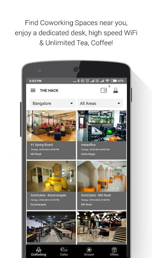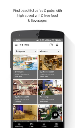 The Hack curates coworking spaces, beautiful cafes & pubs by furnishing them with high-speed WiFi, power sockets and stationary. What's more - you get free food & beverages coupon and additional discounts if you choose one of the cafe or pub to work out of.