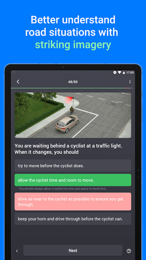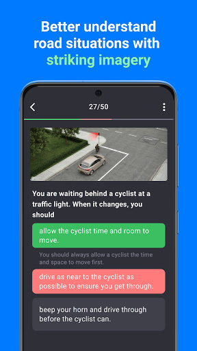 • Penjelasan terperinci: Apabila anda membuat kesilapan, aplikasinya memberitahu anda dengan segera jika soalan salah dan mengapa. Terdapat rujukan kepada bab yang tepat dalam manual memandu. Anda faham dan ingat setiap jawapan yang salah
