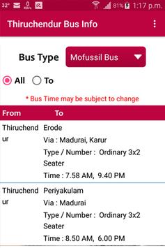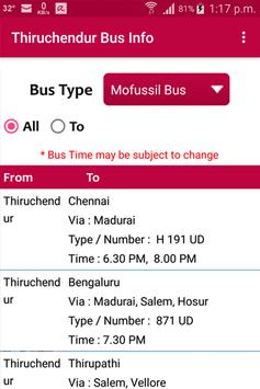 This app provide all information about Thiruchendur Mofussil bus and Town bus.