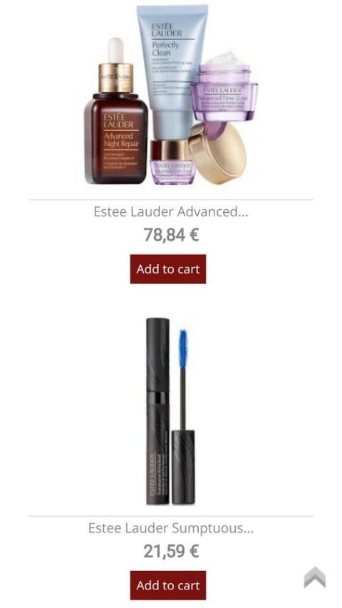 Estée Lauder, Clinique, Aramis, Lab Series Skincare For Men, Tommy Hilfiger, Donna Karan, Michael Kors, Lancôme, Yves Saint Laurent, Biotherm, Giorgio Armani, Ralph Lauren, Cacharel, Diesel, Carolina Herrera, Nina Ricci, Paco Rabanne, Prada, Valentino, Adolfo Dominguez, Victorio & Lucchino, Max Factor, Olay, Elisabeth Arden, Dolce&Gabbana, Escada, Gucci, Hugo Boss, Lacoste, Juicy Couture, Rochas, Clarins, Azzaro, Thierry Mugler, Swarovski Parfums, Anne Möller, Angel Schlesser, Armand Basi, Blumarine, Custo Barcelona, Dsquared, John Richmond, La Perla, Mandarina Duck, Moschino, Versace, Juvena, Piz Buin, Boucheron, Lolita Lempicka, Marlies Möller, Mercedes Benz, 4711, Tabac, Collistar Cosmetics, Oscar de la Renta, Agent Provocateur, Pink Sugar, Jean Louis Scherrer, Etro, Kanebo Sensai, Shiseido, Guerlain, Bourjois , Chen Yu, Jean Paul Gaultier, Narciso Rodriguez, Mandarina Duck, Miyake, Burberry y Hermes, entre otras.