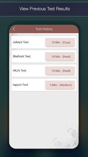 Setiap & amp;Setiap ujian mempunyai masa yang lengkap, anda ingin menyelesaikannya dalam masa yang diberikan.Anda juga boleh menyimpan hasil ujian anda sebagai sejarah untuk rujukan masa depan dan berkongsi dengan orang lain.