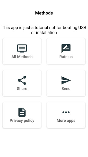 USB Boot and Windows Installation Methods Tutorial app Features: