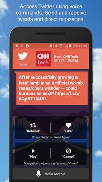 A simple, non-distracting, car mode interface allows you to keep your hands on the wheel and your eyes on the road. You can wake up the app to accept a command by simply saying a trigger phrase such as "Hello Android", or you can use the large, driver-friendly, buttons.