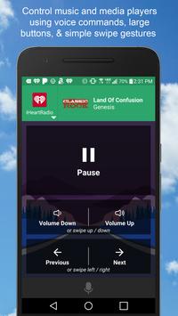 Use voice commands, large buttons, and simple swipe gestures to control music and media players such as Pandora, Spotify, iHeartRadio, Google Play Music, and many more. If supported by your player, you can even use voice searches. For example, say "Play Michael Jackson" to hear a classic song from the King of Pop.