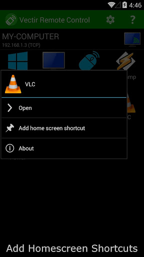 More than just another remote desktop app, Vectir Remote Control provides a collection of application specific remote controls for all of your needs. Control your favorite Windows applications, keyboard, mouse and volume with ease from your phone or tablet.