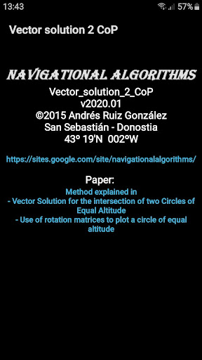 - Penyelesaian vektor untuk persimpangan dua bulatan ketinggian yang sama. (Andrés Ruiz González. Jurnal Navigasi (2008), 61: 355-365. Institut Navigasi Diraja).