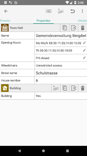 Anda boleh memuat turun data peta untuk kawasan tertentu dan mengedit peta. Selepas mengedit, anda boleh memuat naik terus ke pelayan OSM. Tag-autocompletion, pratetap yang serasi Josm, pautan ke halaman-halaman-Features yang diterjemahkan dan juga menghakimi nama-nama jalan yang berdekatan membantu untuk mencari tag yang betul untuk digunakan.